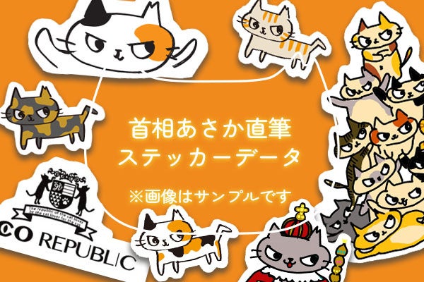 かわいい猫のイラストが描かれた、ネコリパブリックオリジナルの様々なステッカーのデータ。