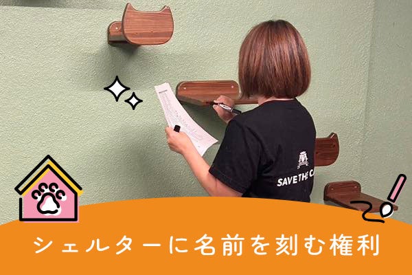 移転先の東京シェルターに、ネコリパブリック代表・河瀬麻花が直筆でお名前を刻みます。