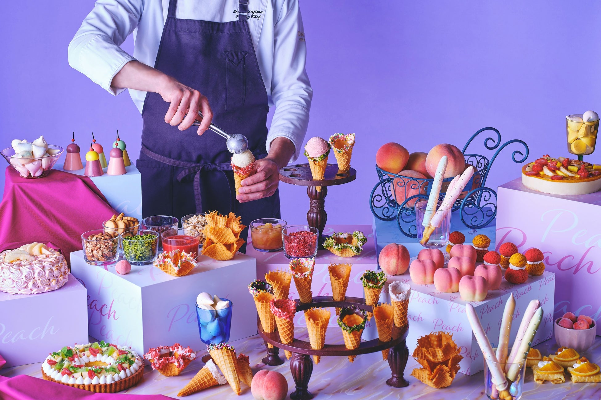 創造力をかき立てるこのスイーツビュッフェは、夏休み中のお子様にもぴったり。目で見て、舌で味わう、ピーチ尽くしのスイーツたちを心ゆくまでご堪能ください。