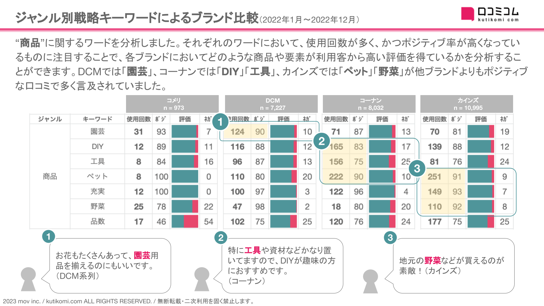 【コメリ/DCM/コーナン/カインズ】ホームセンターの口コミ4.8万件を大調査:各ブランドの”推し”商品が口コミから明らかに!口コミ分析レポートを口コミコムが公開