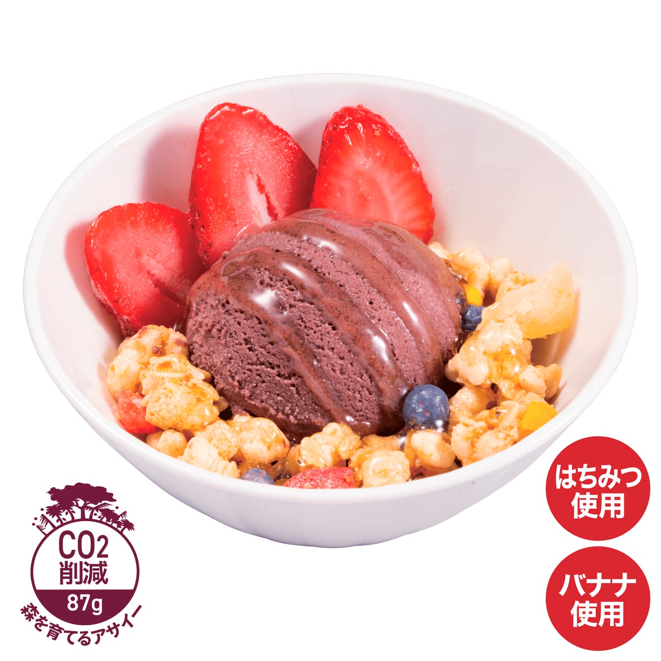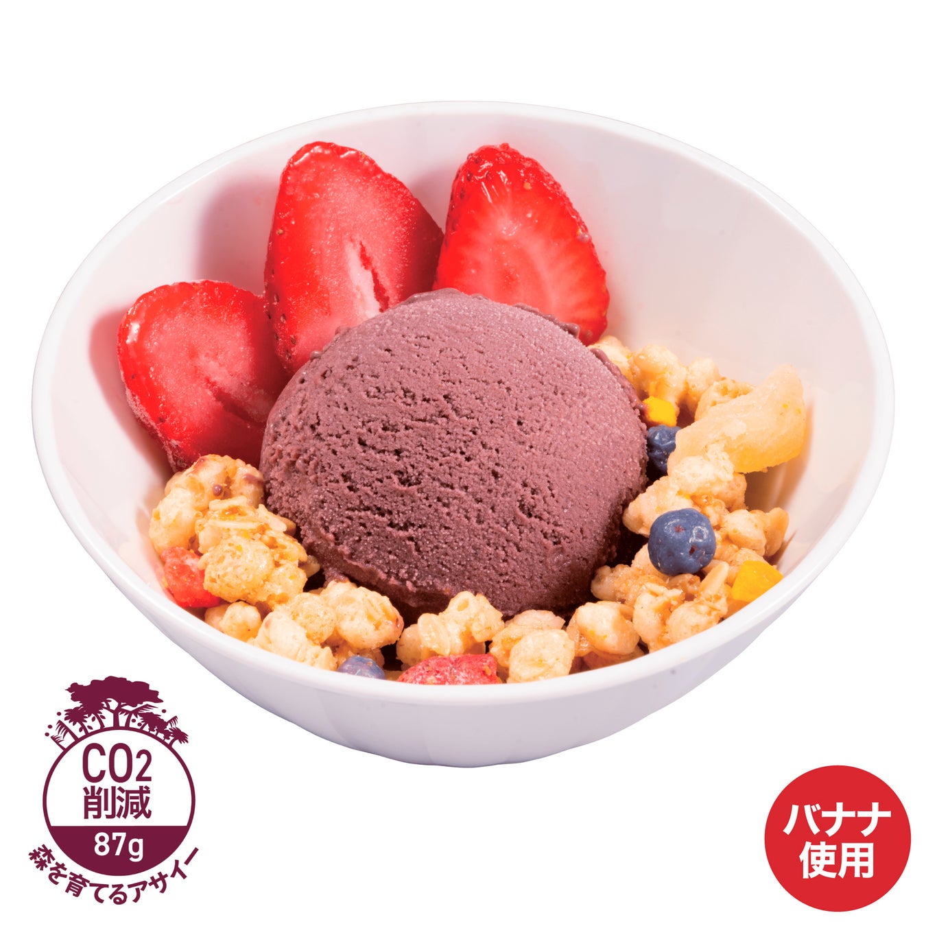 スムージー感のあるアサイーにバニラアイスを加え、飲みやすさと甘さをアップし、グラノーラでザ