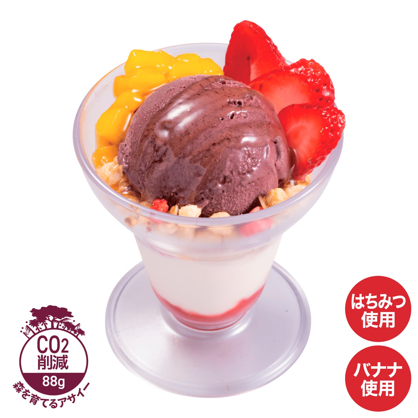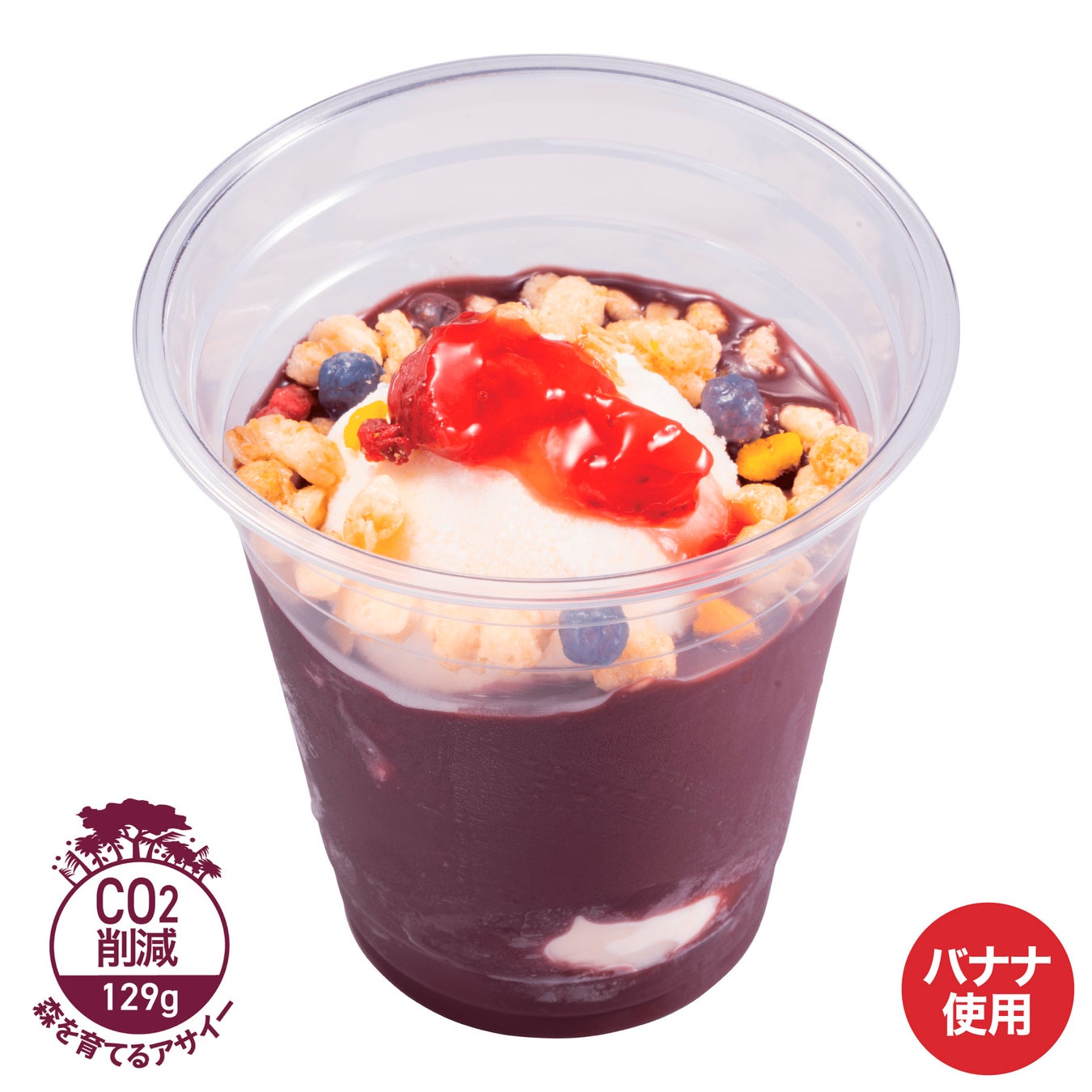 現在、特にZ世代を中心とした若者の間で人気となっている「アサイー」を使用したスイーツが4品導入されました。当社の濃厚かつCO2削減にも配慮したアサイーが使用されており、おいしいだけでなく体にも環境にも優しいサスティナブルなスイーツとして登場します。