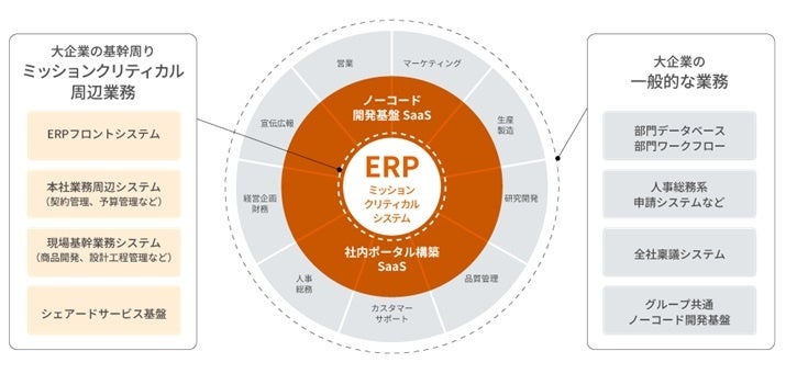 しかし、それでもまだ増大するデジタルニーズに対してIT人材が不足しているというのが現実です。 今や現場業務だけでなく、ERPの周辺業務までもノーコードツールでシステム化できるところまで来ていますが、そこにはやはりITの専門家としての知見やシステムインテグレーションのノウハウが必要です。