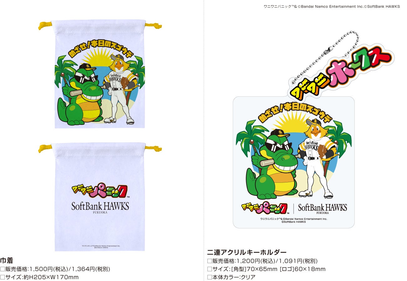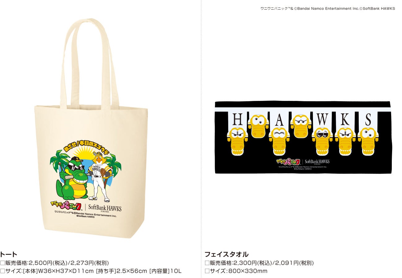 この度、スポーツ関連グッズやイベント・アーティストグッズの制作を手掛ける株式会社スペースエイジ(本社:広島県広島市、代表取締役:吉岡憲治)は、ファナティクスジャパン合同会社と共同で福岡ソフトバンクホークス株式会社(本社:福岡県福岡市、代表取締役社長CEO:後藤芳光 以下「ホークス」)と、株式会社バンダイナムコエンターテインメント(本社:東京都港区、代表取締役社長:宮河恭夫)の人気コンテンツとのコラボレーション企画を発表致します。第七弾はワニワニパニックです。