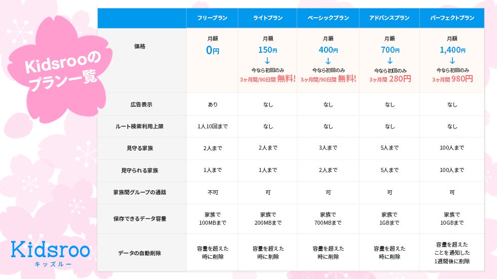 大切な家族を見守るアプリ「Kidsroo」、3月1日(火)より全ての有料プランが3ヶ月間割引価格となる「春の新年度応援キャンペーン!」を開始!