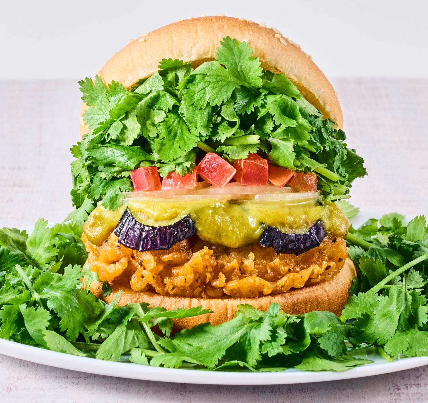 過去にも6倍や10倍量のパクチーチキンバーガーが登場しておりますが、更に上回る15倍相当のパクチーを使用。※パクチーチキンバーガー パクチー1倍比