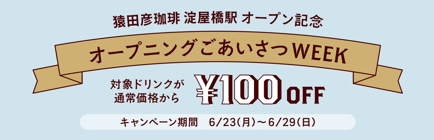 6月23日(月)〜29(日)は大阪の皆様へのごあいさつの気持ちから、猿田彦珈琲の人気定番メニューより季節ごとにエスプレッソブレンドの配合を調整するこだわりのカフェラテや、浅煎りから深煎りまで種類豊富なラインナップを取り揃えたホットコーヒー、アイスコーヒーが100円引になる特別週間を実施。さらに期間中は、先着3,000組様限定で、1会計につき1枚、6月30日(月)から使える10%OFFチケットをプレゼントいたします。お得なこの機会に、ぜひ猿田彦珈琲の一杯をお楽しみください。