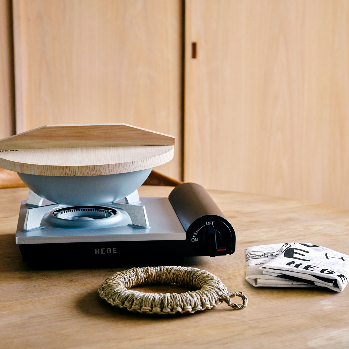 届いた日からすぐ使える手拭い・鍋敷きをセットに。炊く・煮る・蒸す・炒めるができるHEGEの直火鍋で、新生活の食卓をすぐにはじめられる〈新生活スターターセット〉が数量限定で登場。