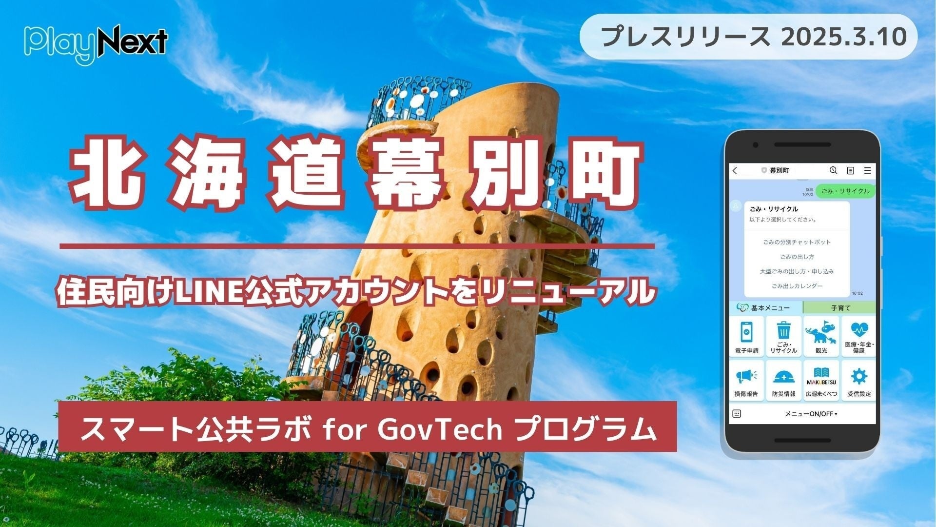 プレイネクストラボ株式会社(本社:東京都品川区、代表取締役:柏 匠、以下 「プレイネクストラボ」)は、北海道幕別町(以下「幕別町」)のLINE公式アカウントを「スマート公共ラボ with LINE GovTechプログラム」を活用して新規開設し、2025年3月10日(月)より運用を開始されたことをお知らせします。
