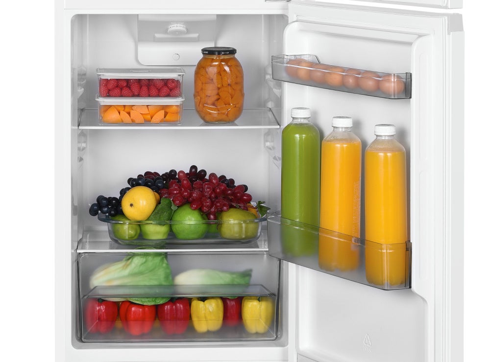 卵ケース付きのドアポケットは2段に分かれており、上段は調味料や小物などをすっきり収納できます。下段は2Lのペットボトルや牛乳など高さがある食品の収納に便利です。