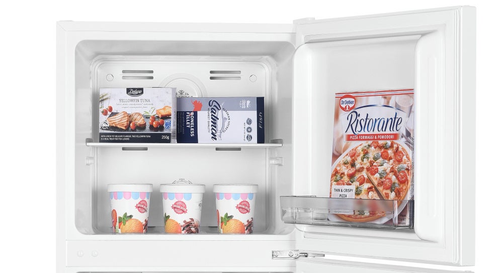 冷凍室容量は50Lで、冷凍食品やアイスの箱などかさばる食品がラクラク収納できます。また仕切り棚は取り外し可能なため、使い方に合わせて調節していただけます。