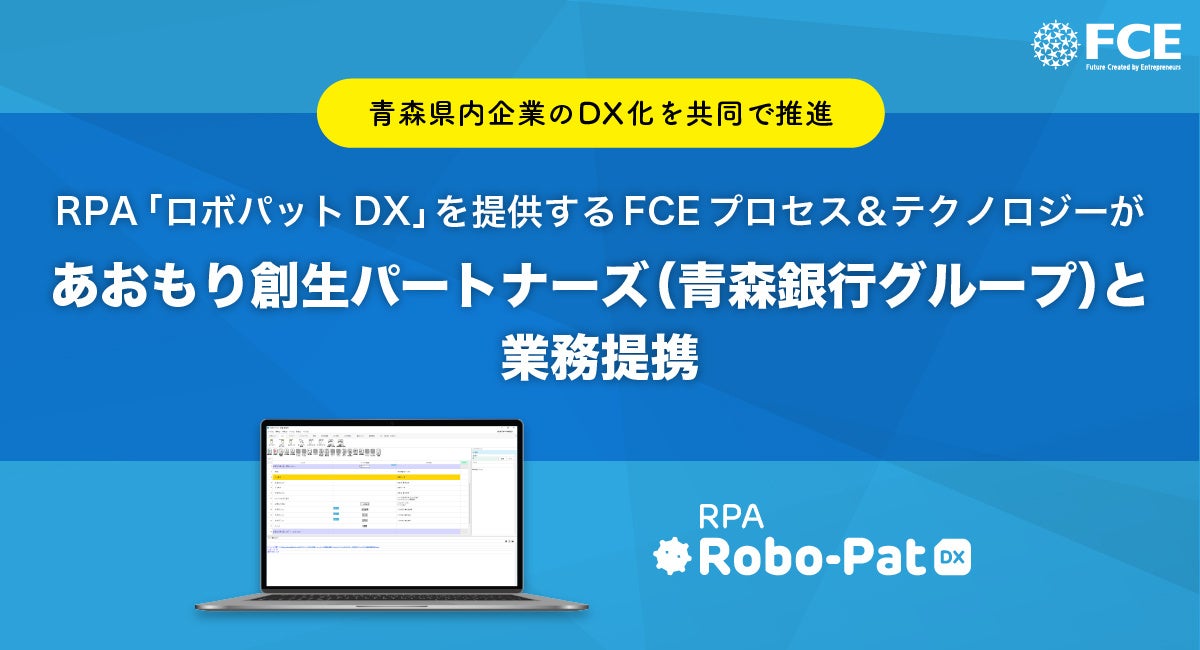 RPA「ロボパットDX」を提供するFCEプロセス&テクノロジーがあおもり創生パートナーズ(青森銀行グループ)と業務提携~青森県内企業のDX化を共同で推進~