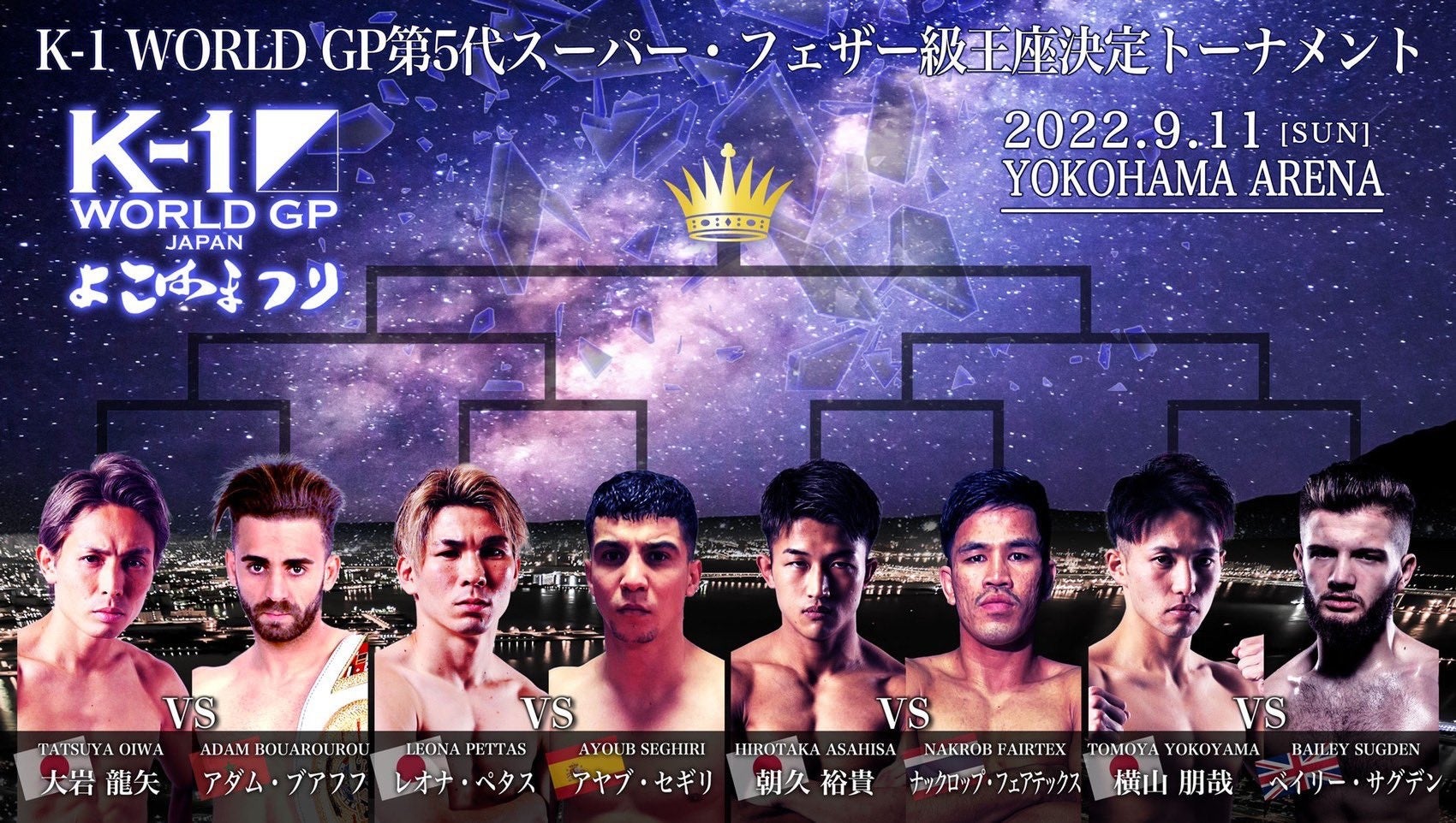 7月15日(金)都内にて、9月11日(日)神奈川・横浜アリーナで開催される「K-1 WORLD GP 2022 JAPAN~よこはまつり~」の第1弾対戦カード発表記者会見が行なわれ、先日、武尊の返上により空位となったK-1スーパー・フェザー級王座をかけた「K-1 WORLD GP第5代スーパー・フェザー級王座決定トーナメント」が決定しました。