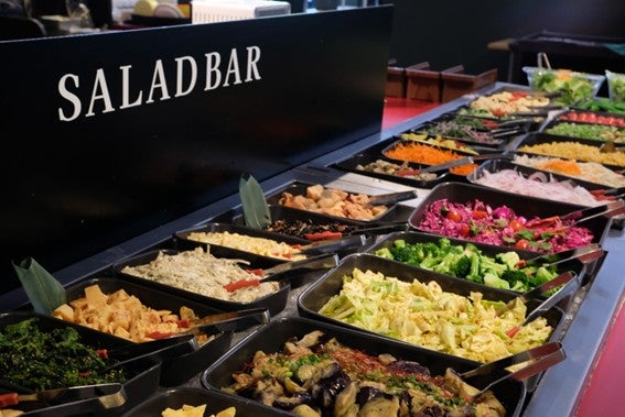 サラダバーは45品。あさくまの濃厚なコーンスープ、牛すじカレー、デザートバーもついてきます!