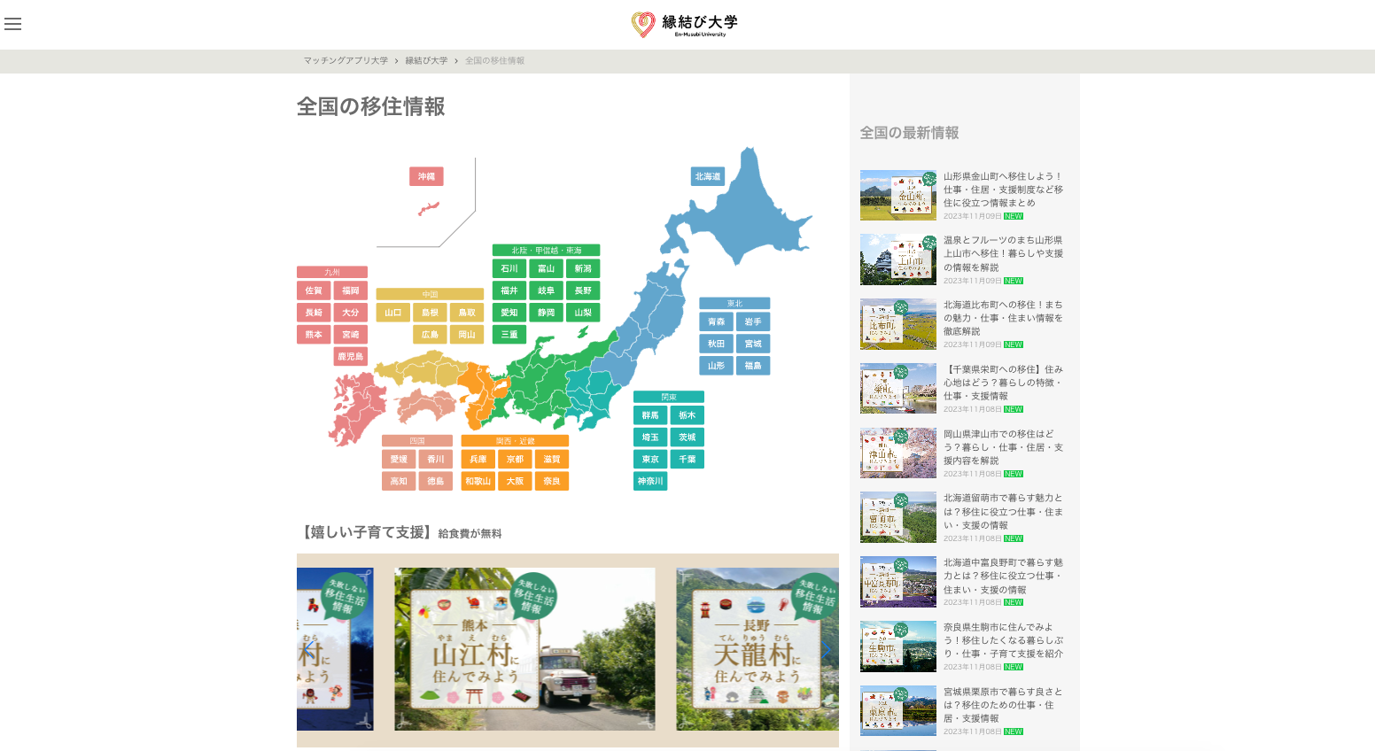 縁結び大学の『全国移住情報』ページをリニューアルしました