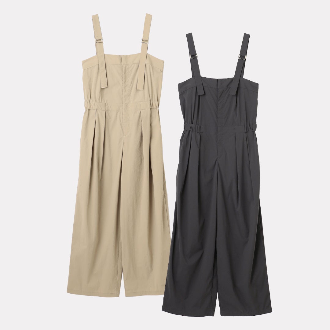 水遊びやちょっとしたアウトドアにもぴったりな撥水加工で、濡れても安心。バストとウエスト部分はゴム仕様で締め付けが少なく、ナイロン素材の程よいハリ感が軽快な動きやすさと快適な着心地を実現しています。タック入りのワイドシルエットで、着心地はリラックスしながらもきちんと感のある着こなしが叶います。おしゃれを楽しみながら子どもとの時間も思いきり満喫したい、そんなお母さんを応援する一着です。