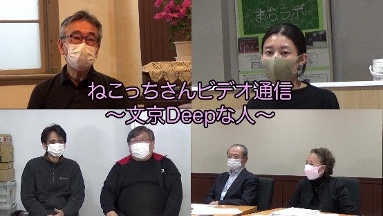 「ねこっちさんビデオ通信~文京Deepな人」は、学生が根津、向丘、千駄木、白山(+本郷、弥生、西片)地区の人々と関わり、地区の今と歴史を知り、その実情に詳しい地元の人や面白い人に語ってもらう映像コンテンツです。2021年度は、4作品と総集編を制作。根津教会の内山雅之氏、一般社団法人せんとうとまちの栗生はるか氏、郷土史研究家の忍足和俊氏と文京メディアブリッジの竹形誠司氏、文京区西片の魅力を川口勝子氏と片貝憲二氏にお聞きした内容を編集しました。本映画祭では、30分にまとめた総集編が上映されました。