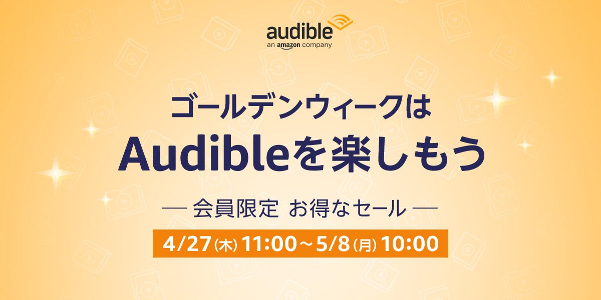 世界最大級のオーディオブックおよび音声コンテンツ制作・配信サービスであるAmazonオーディブル(以下、Audible)は、2023年4月27日(木)11:00から5月8日(月)10:00までのゴールデンウィーク期間中、Audible会員限定のセールを開催することを発表しました。この期間中、Audible会員は特定の聴き放題対象外の話題のオーディオブックを750円で単品購入することができます。