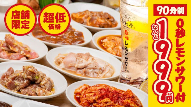 看板メニューの「仙台塩ホルモン」はじめ、キムチ・サラダ・ホルモン・焼肉などフード19品と、「0秒レモンサワー」ソフトドリンク各種が飲み食べ放題!