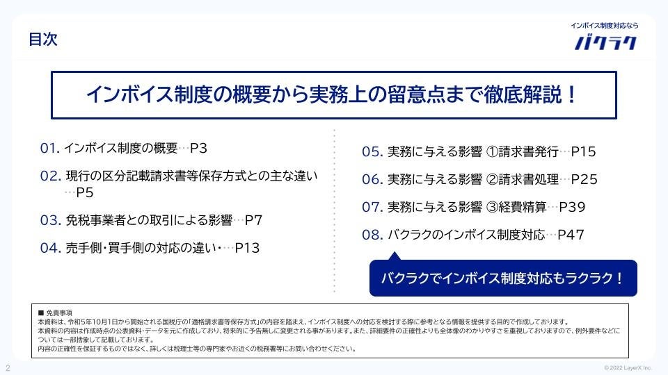 株式会社LayerXは、2023年10月1日に開始される適格請求書等保存方式(以下「インボイス制度」)に向けて、経理担当者向けの資料「インボイス制度徹底解説ガイド」を公開しました。