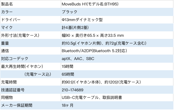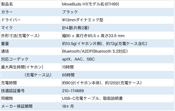 耳掛け構造で激しい動きも安心、IPX8防水のスポーツ向け完全ワイヤレスイヤホン「MoveBuds H1」
