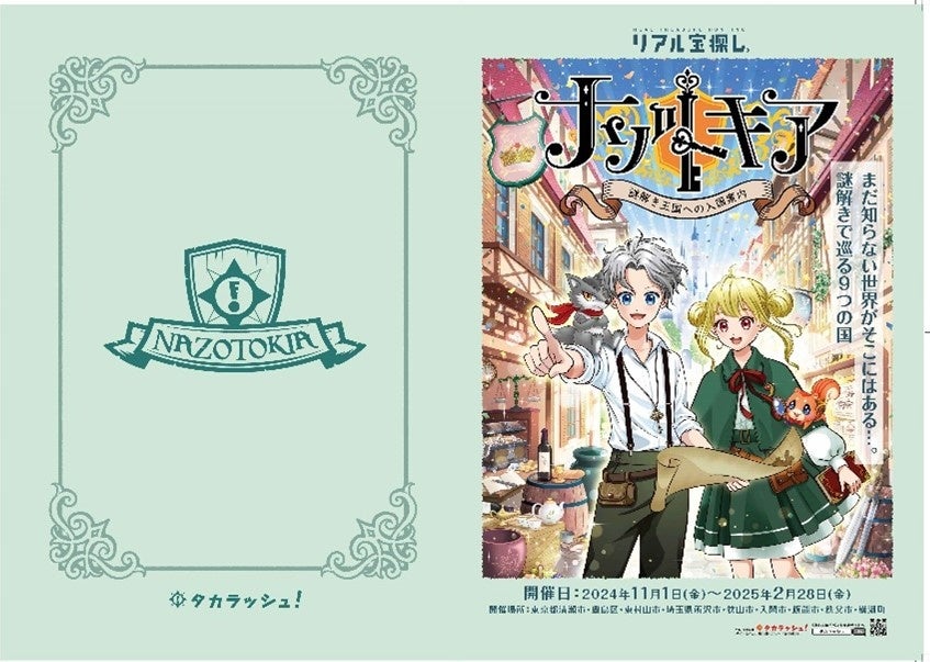 体験型コンテンツ「リアル宝探し」の企画・制作・運営を手がける株式会社タカラッシュ(本社:東京都品川区、代表取締役:齊藤 多可志、以下タカラッシュ)は、2024年11月1日より、西武線沿線の東京都清瀬市・豊島区・東村山市、埼玉県所沢市・狭山市・入間市・飯能市・横瀬町・秩父市の9市区町広域連携による周遊型宝探しイベント『ナゾトキア〜謎解き王国への入国案内〜』を実施します。