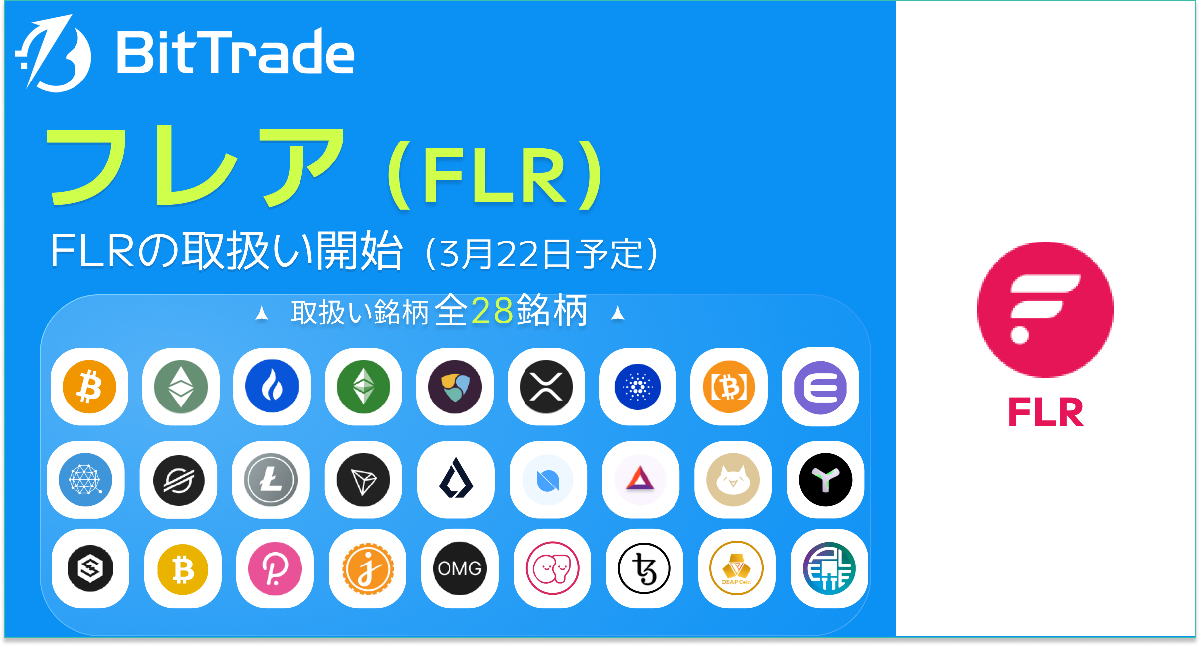 取扱い暗号資産銘柄数国内No.1*のビットトレード、 フレア( FLR )の取扱い開始に関するお知らせ