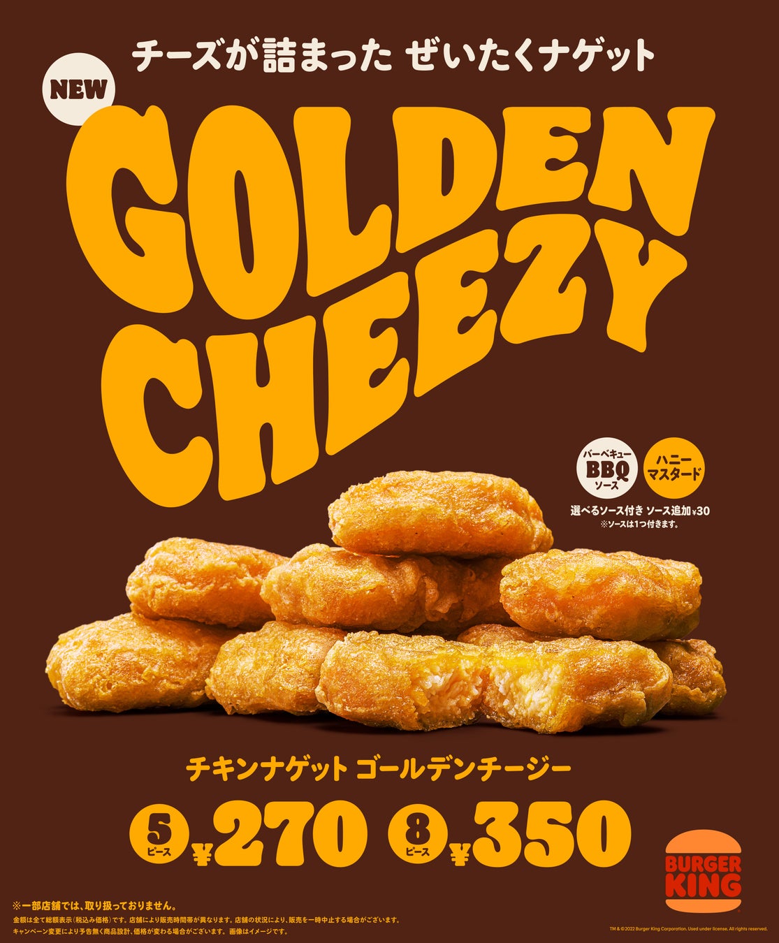 2022年9月23日(金)から、コクのある濃厚チーズがたっぷり詰まった、ぜいたくなおいしさ『チキンナゲット ゴールデンチージー』を期間限定で新発売いたします。