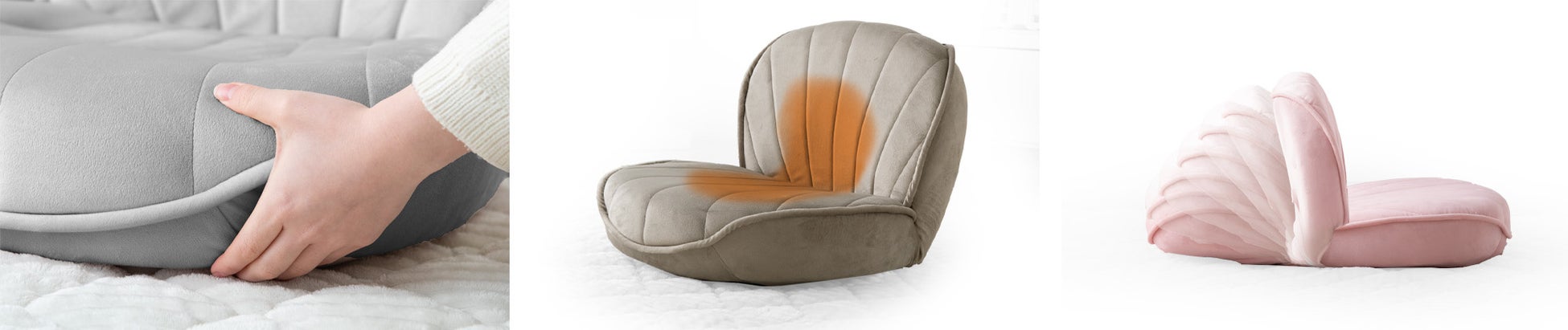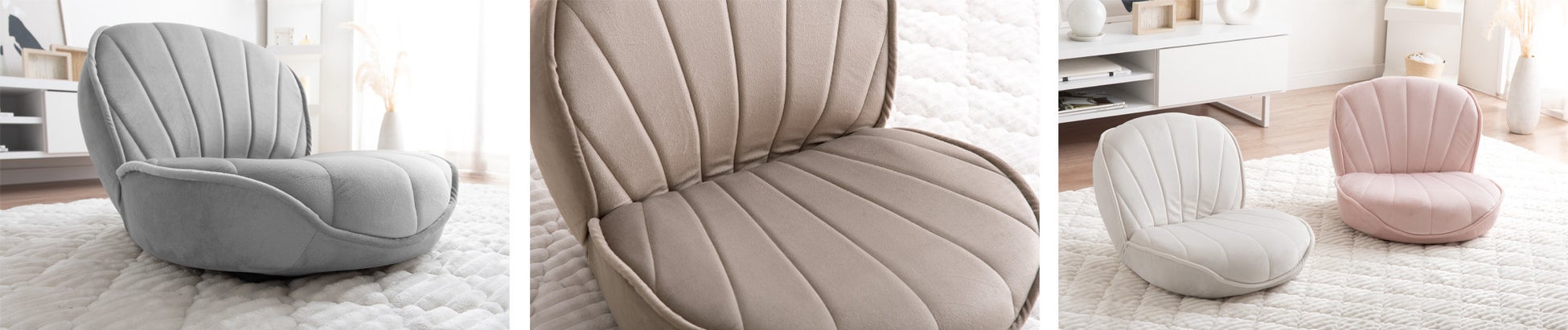 (※画像:貝殻のような形状とくすみカラーが可愛い、シェル型ポケットコイル座椅子)
