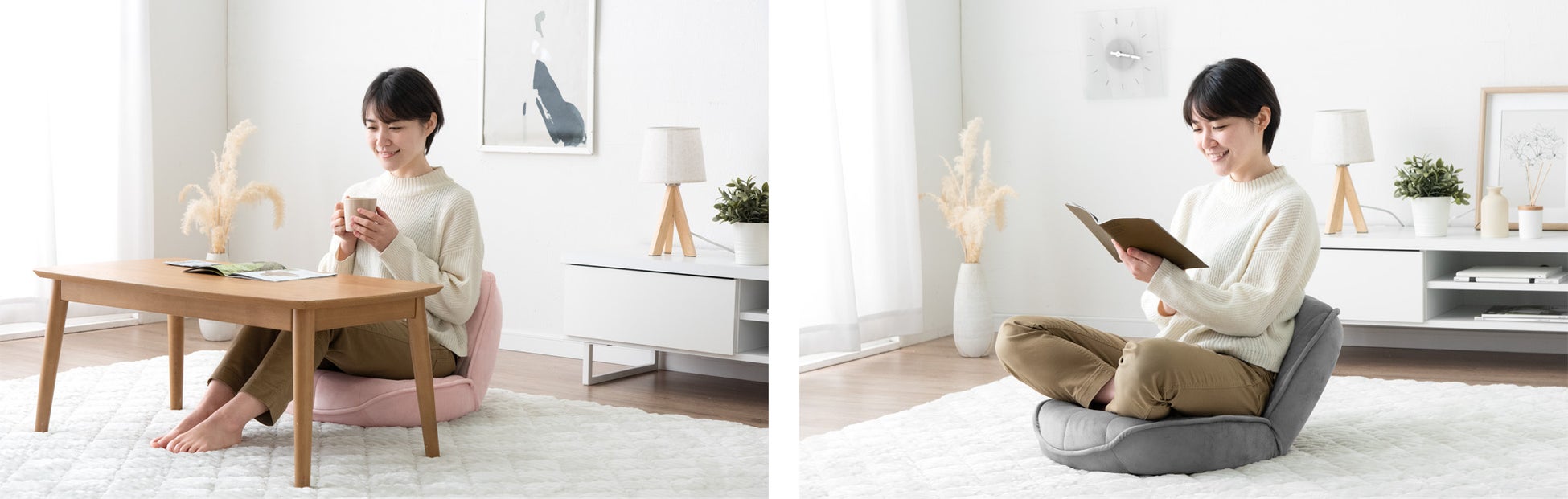 こちらの「シェル型ポケットコイル座椅子」はコンパクトなサイズで、一人暮らしのお部屋やスペースが気になる方でもゆとりをもってご使用いただくことができます。また背もたれも低めとなっており、お部屋に圧迫感を与えません。