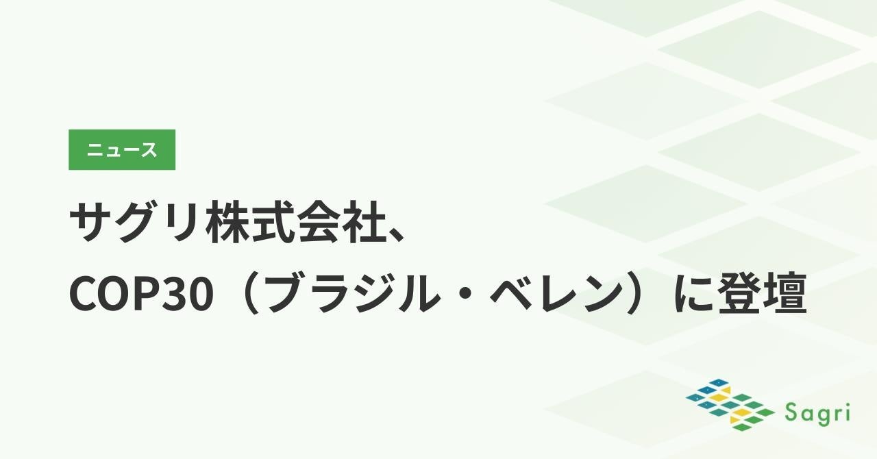 衛星データとAIを活用し、農業および環境課題の解決を目指すサグリ株式会社(本社:兵庫県丹波市、代表取締役CEO:坪井俊輔、以下「サグリ」)は、2025年11月10日(月)から11月21日(金)にブラジル・ベレンで開催される「国連気候変動枠組条約 第30回締約国会議(COP30)」において、農林水産省が主催する複数のイベントに登壇いたします。