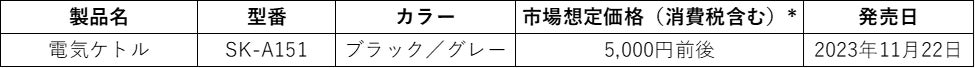 シロカ、蒸気セーブ機能や転倒時湯もれ防止機能で安全面に配慮した「電気ケトル」を新発売!
