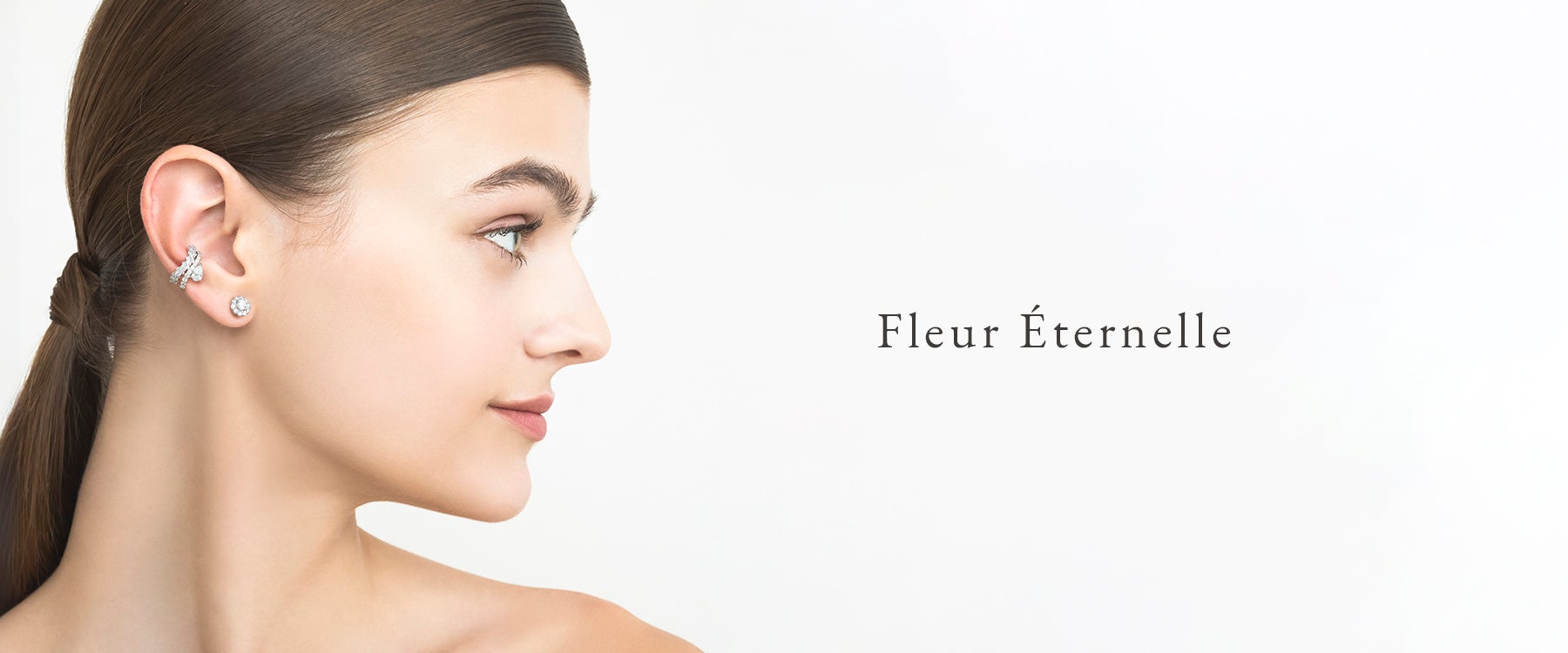 「永遠の花」がテーマの普遍的でエレガントなデザインは、いつまでも色褪せず時代を超えて永きにわたってお使いいただけます。シンプルながら上品な輝きを放つイヤカフは、ピアスなどその他のアイテムとも美しく調和。イヤカフのレイヤード使いや、お手持ちのジュエリーと合わせて、さまざまなスタイリングをお楽しみください。
