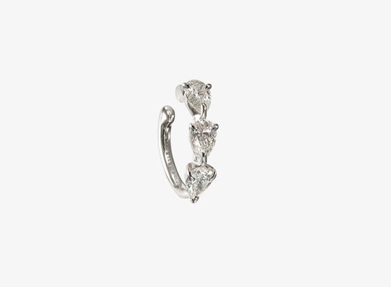 大粒の上質なペアシェイプダイヤモンドを3ピース贅沢にセッティングしたイヤカフ。