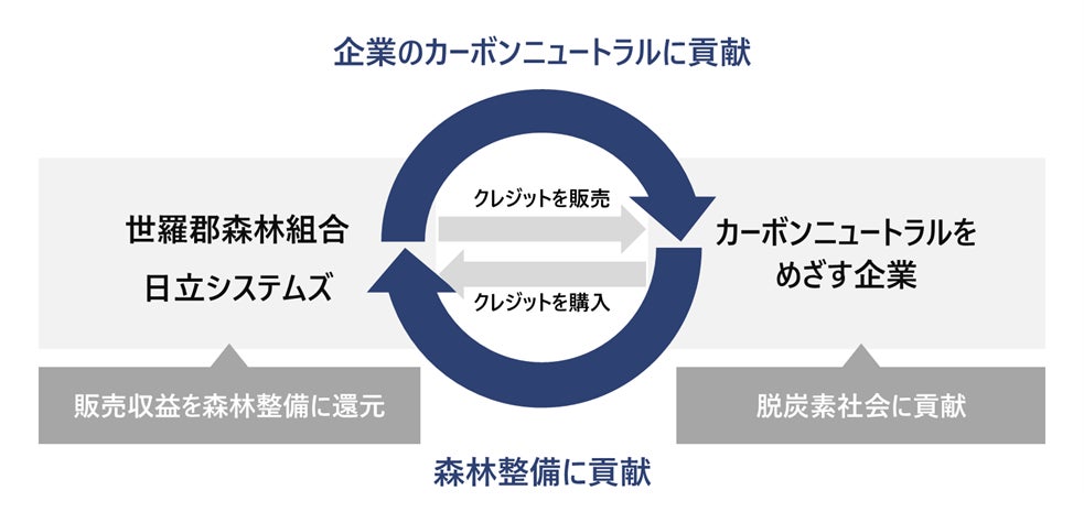 これまで世羅郡森林組合は、持続可能な森林を守ることで地域に貢献してきましたが、今回のプロジェクトでは、日立システムズと協創し、創出したカーボンクレジットを広島県をはじめとする中国地方の企業に販売して、地産地消を実現する新たな森林活用方法で地域社会に貢献します。また、カーボンクレジットを全国の企業にも幅広く販売して、販売収益を森林整備に還元する仕組みを作ることで、持続可能な森林経営をめざします。