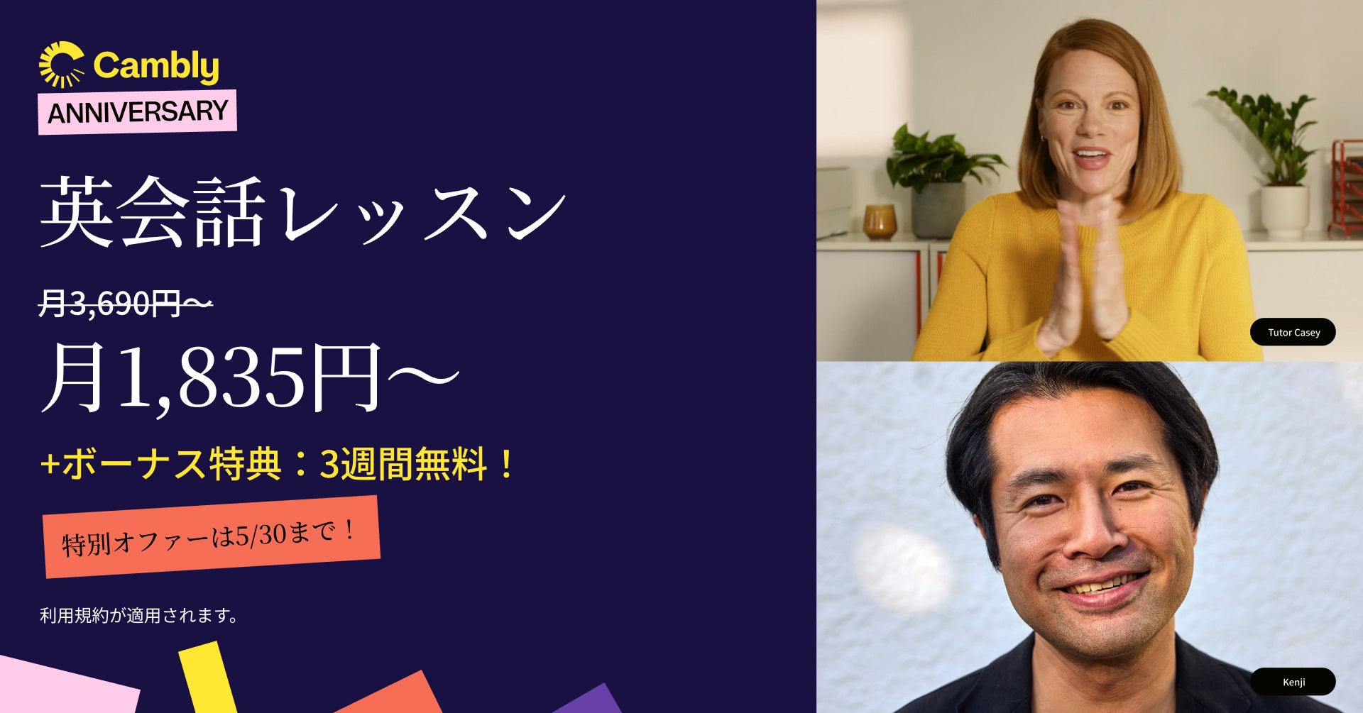 Camblyのアニバーサリーキャンペーン第2弾開催中!今週限定:英会話レッスンが2週間分無料に