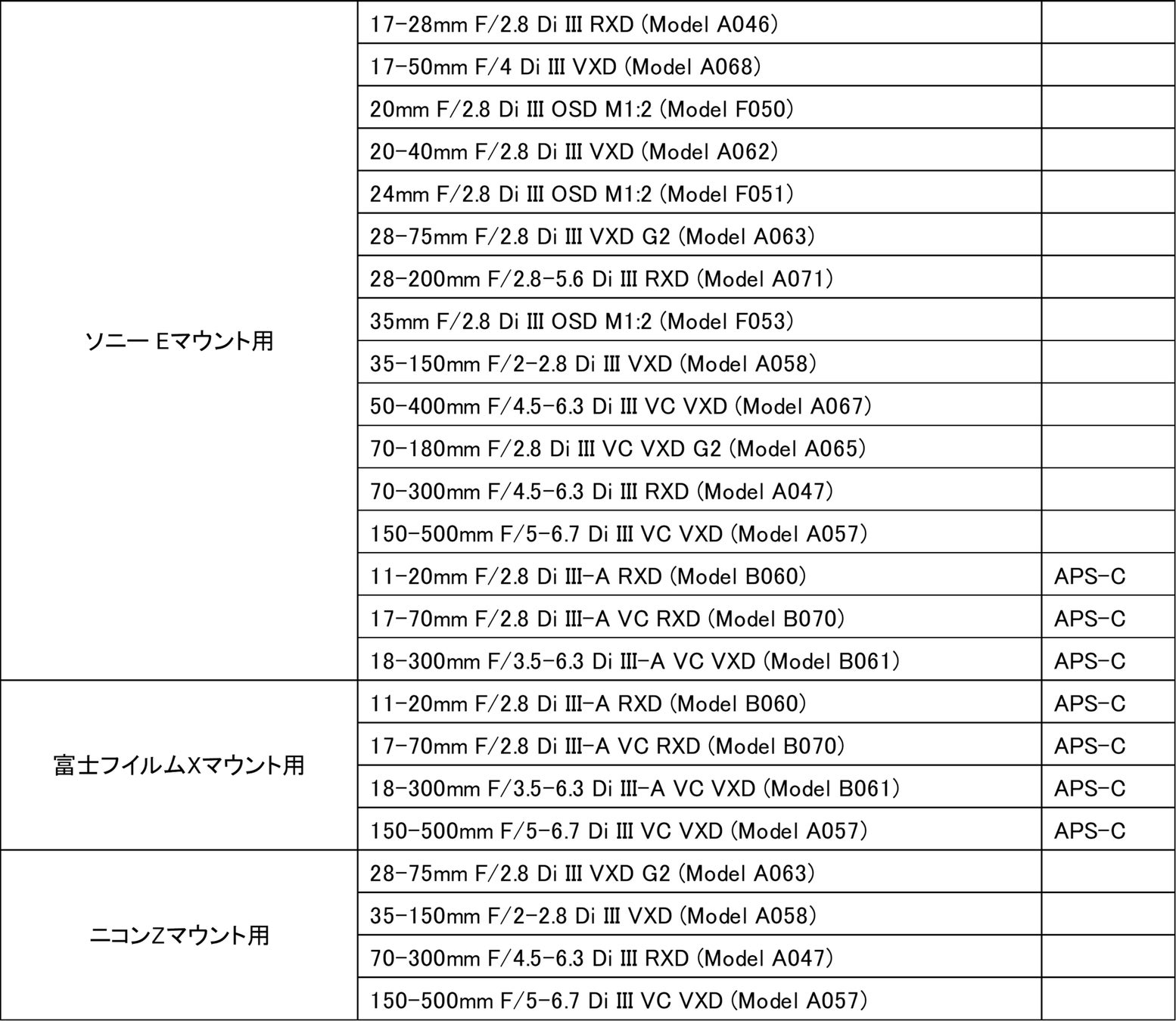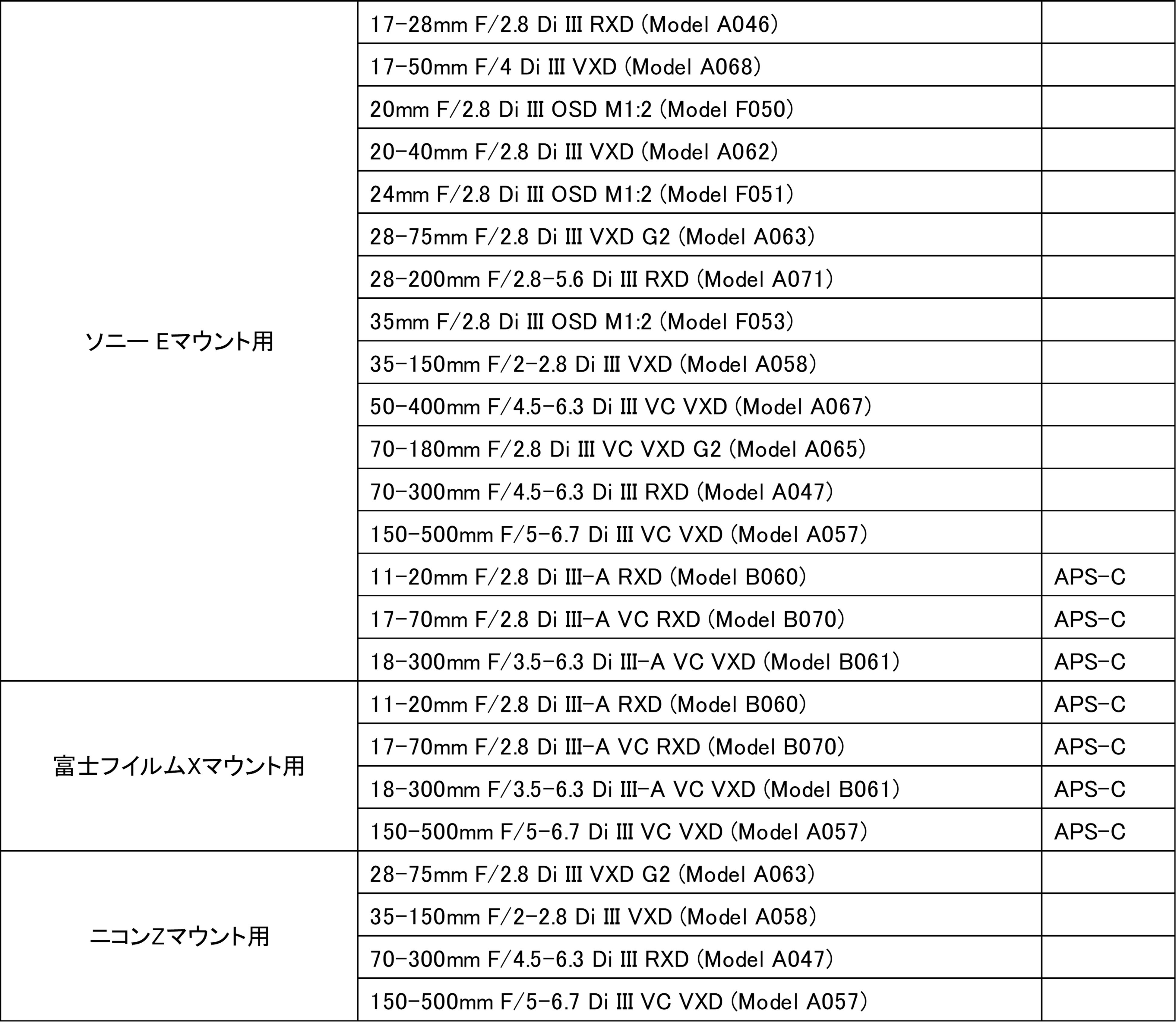 貸出し機種 貸出しレンズ一覧をご確認ください。