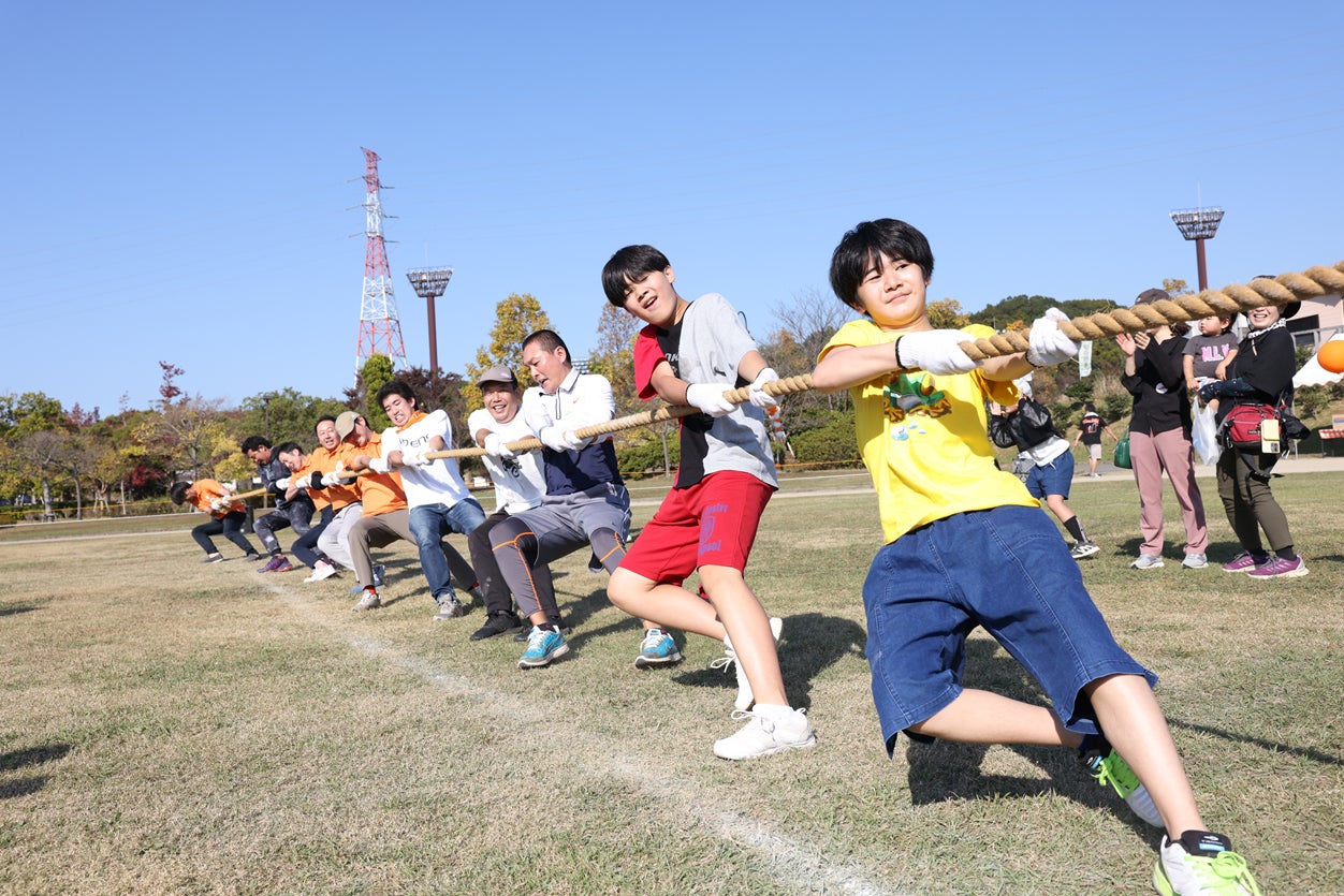 ご参加いただいた「みんなのうんどう会」。今年は、より古賀市の皆さまと一緒に盛り上がるイベントにするために、運動会ならではの⽟⼊れや⼤綱引きなどの競技はもちろん、古賀市周辺で⼈気の