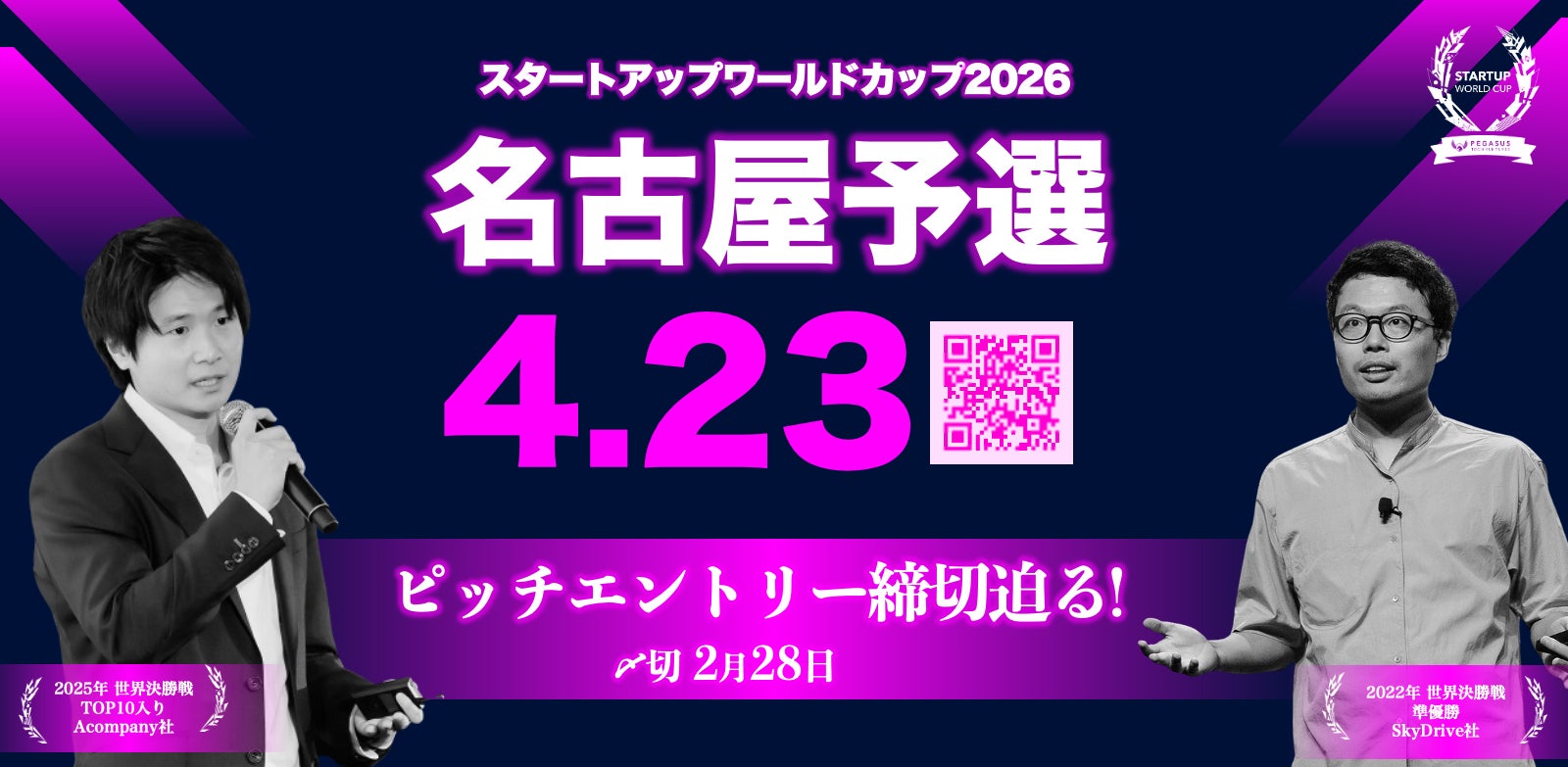 ペガサス・テック・ベンチャーズ(本社:米国カリフォルニア州サンノゼ、代表:アニス・ウッザマン)は、「スタートアップワールドカップ2026」名古屋予選を、2026年4月23日(木)にSTATION Aiおよび名古屋公会堂にて初開催いたします。