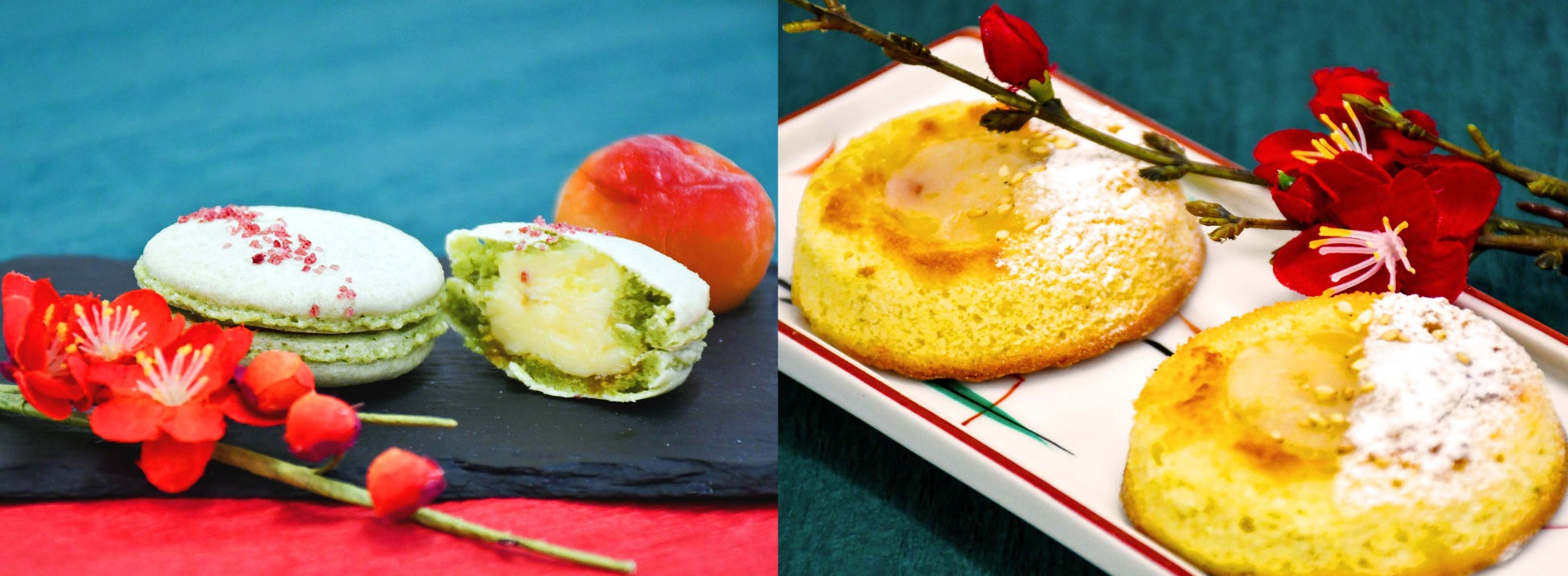 南高梅と白餡や味噌、チーズ、バジルなど斬新など素材との組み合わせを試行錯誤し、マカロンやブラウニー、フィナンシェ、ケークサレ、クグロフなど多彩な梅スイーツに仕上げました。お酒のおつまみから食後のデザートまで梅づくしです。