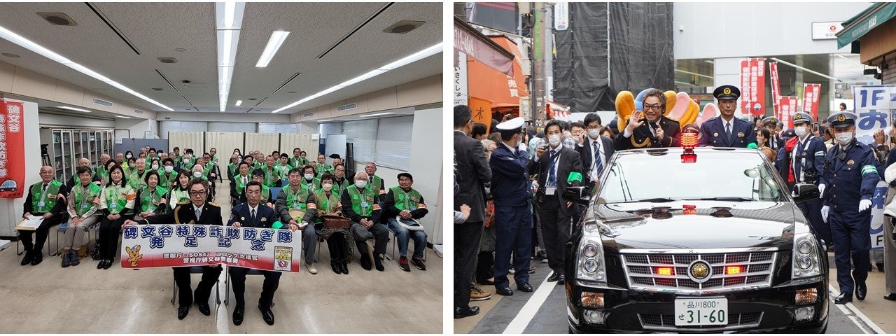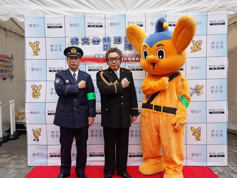 この度、特別防犯支援官のコロッケ氏が警視庁碑文谷署主催の啓発活動に出席、地域住民に向け、特殊詐欺被害撲滅を訴えました。