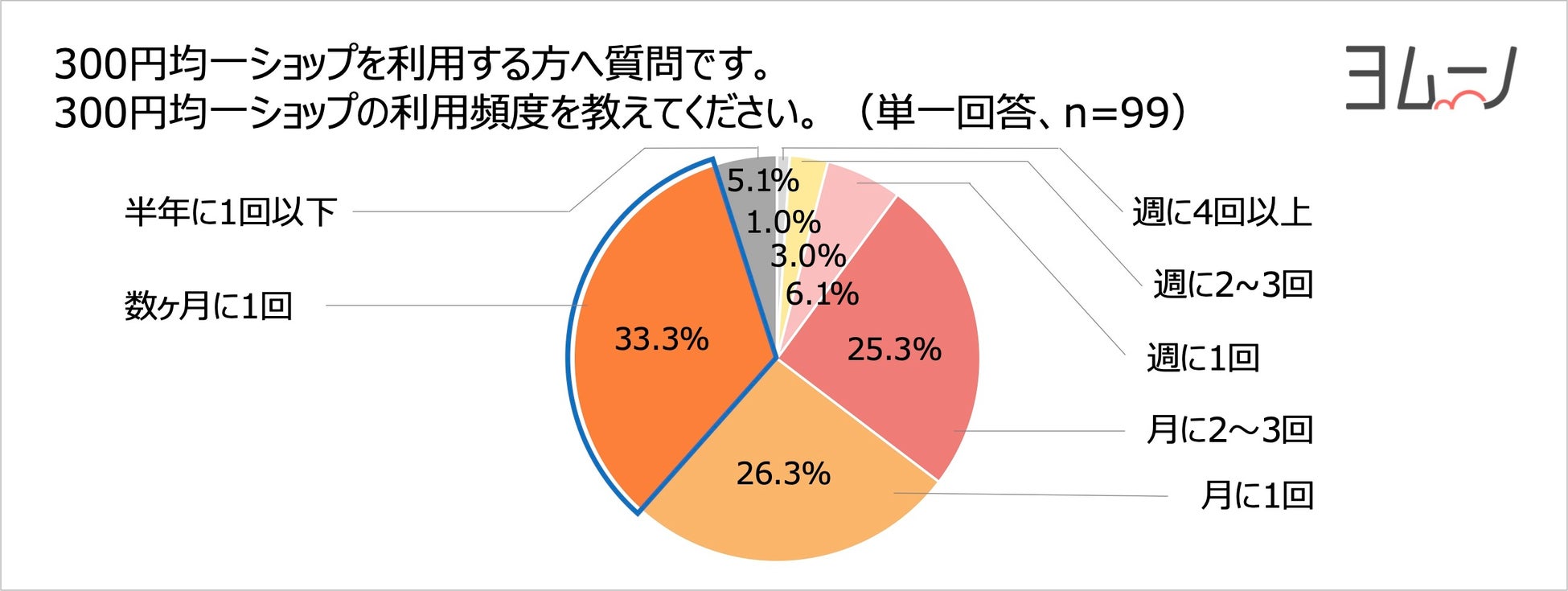 - 【利用頻度】100均は月に2〜3回、300均は数ヶ月に1回利用する方が最多