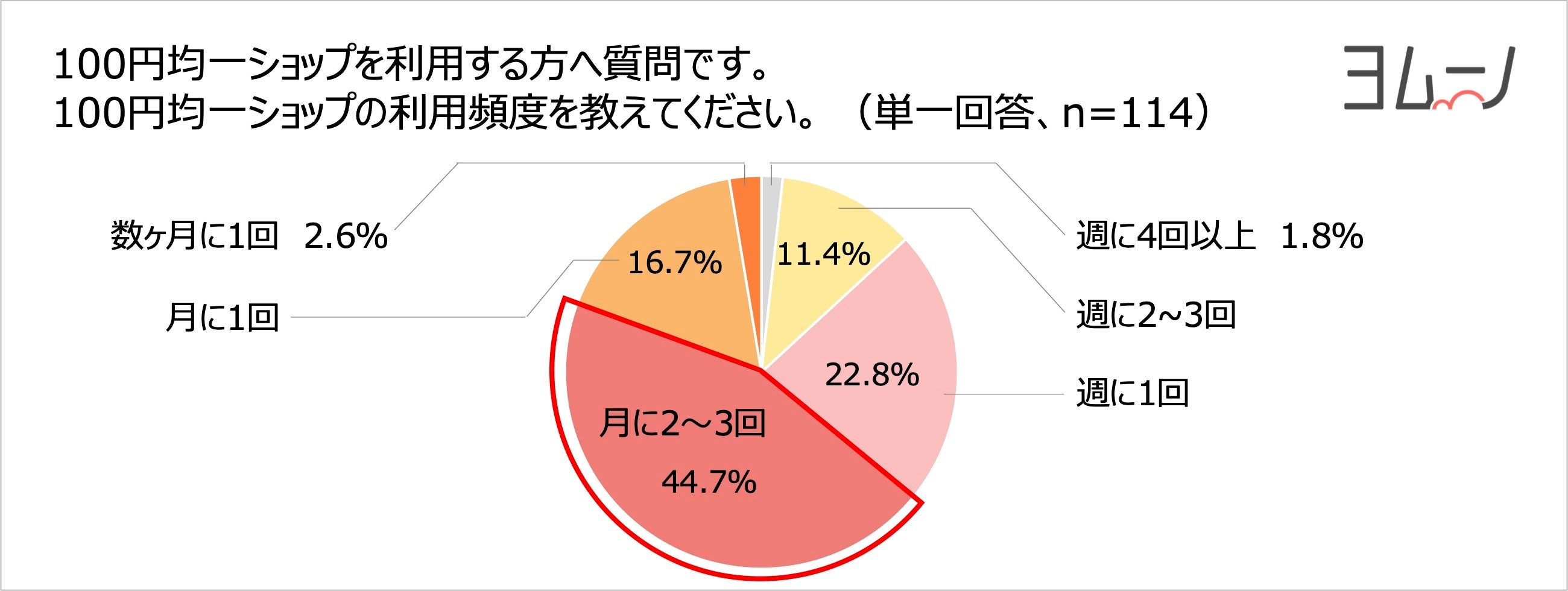 1.【利用頻度】100均は月に2〜3回、300均は数ヶ月に1回利用する方が最多