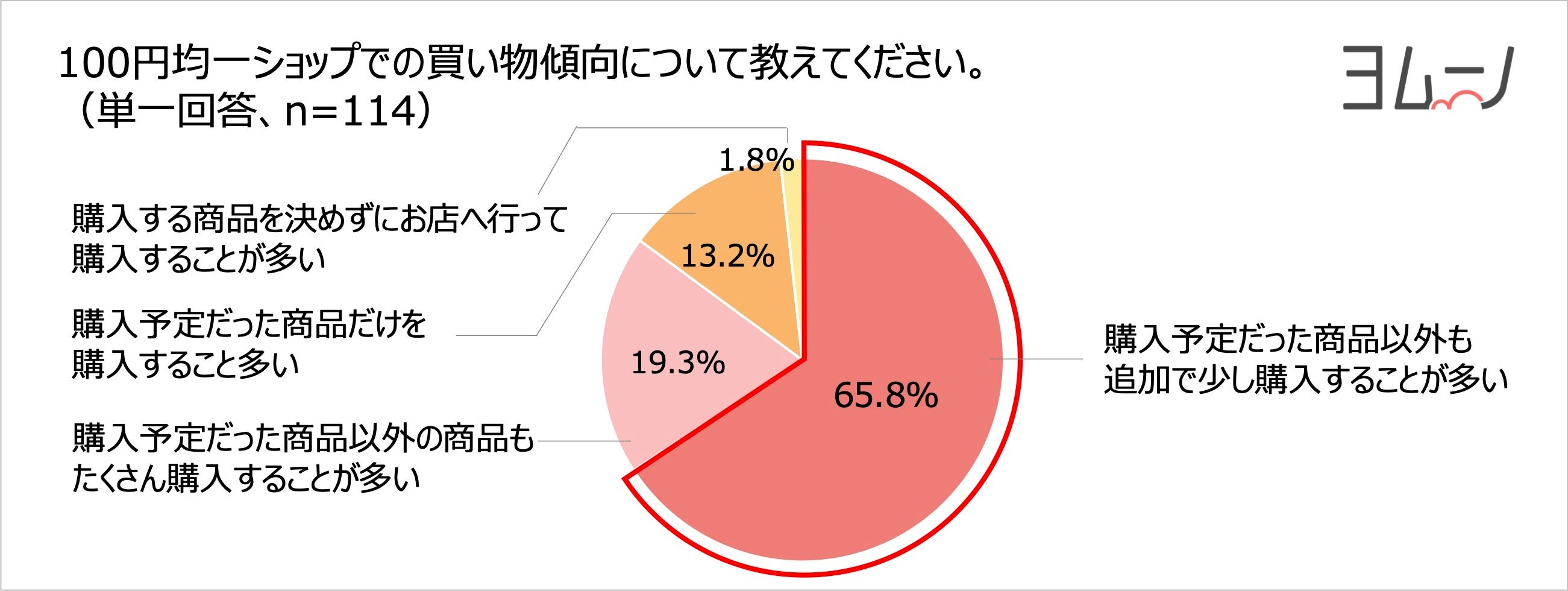 - 【1回あたりの購入金額】100均の平均予算は約900円、300均は約1200円。欲しい商品に加え、店内で見つけた気になる商品を “ついで買い” する方が多数