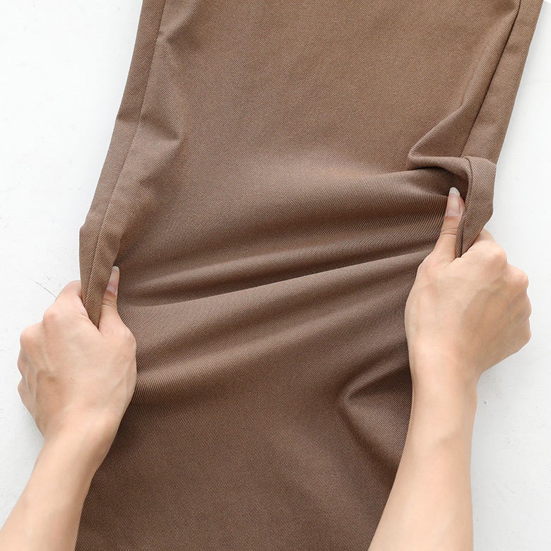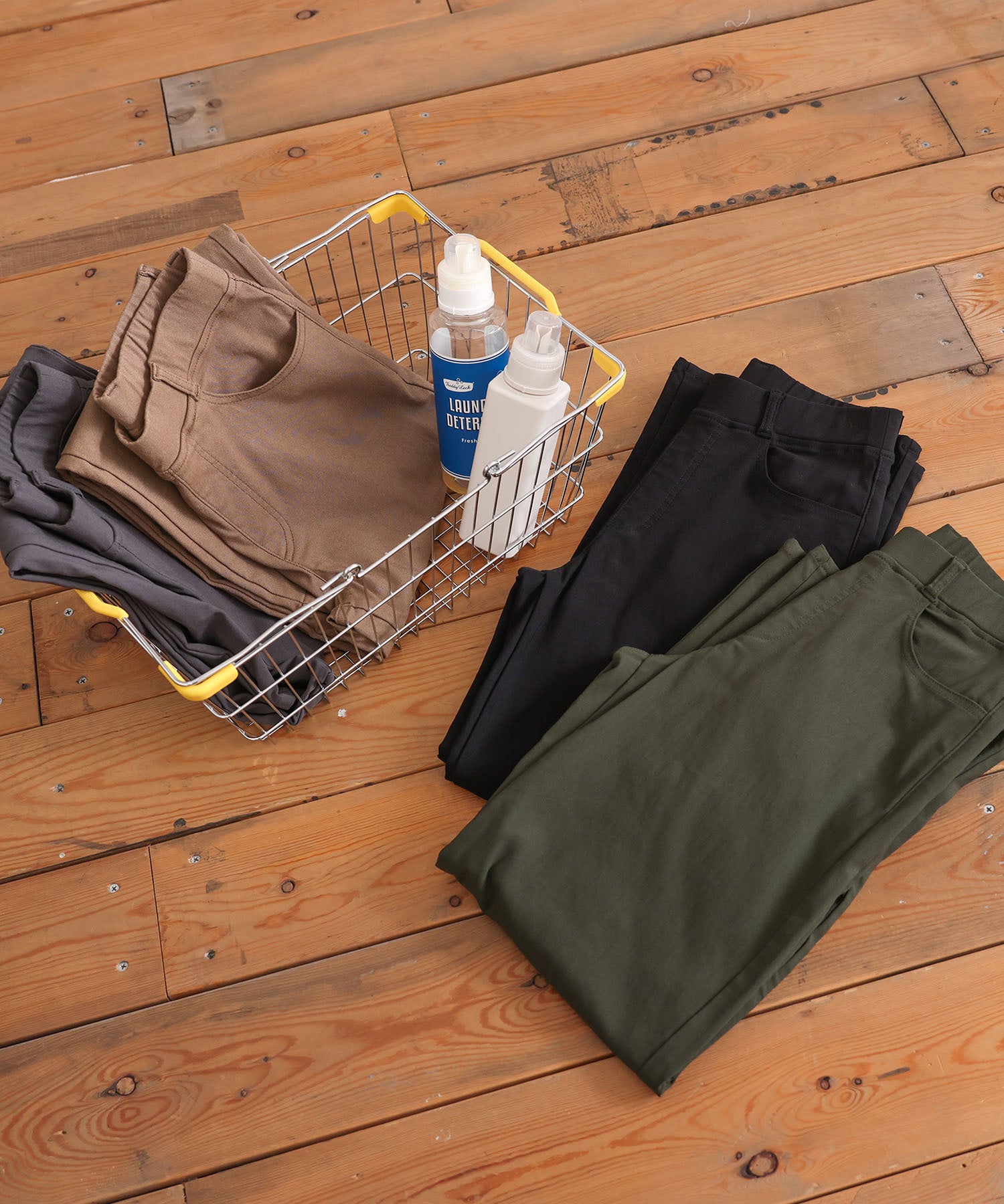 洗濯機にそのまま入れて洗えるため頻繁に着用しても安心な「洗える」パンツです。