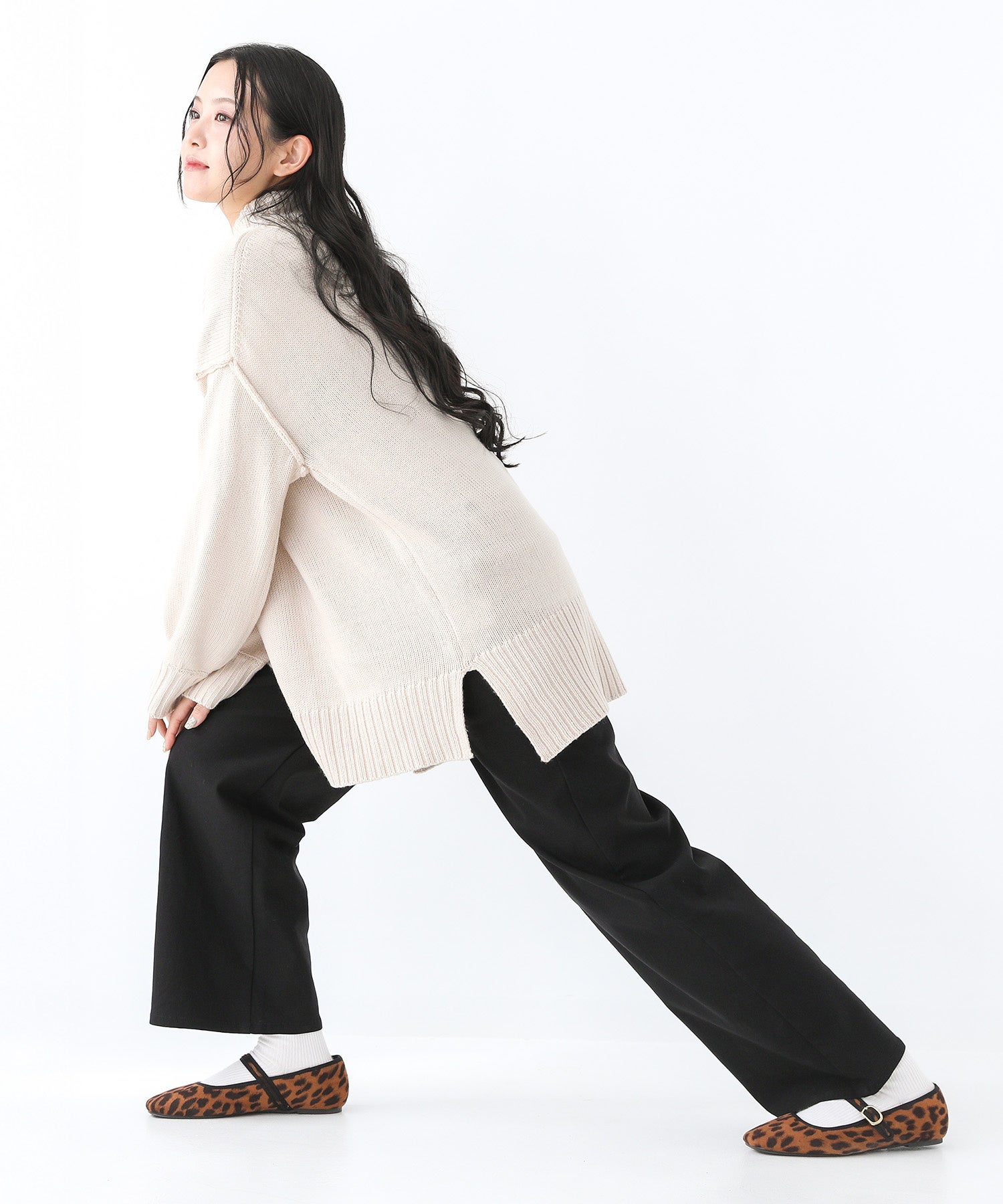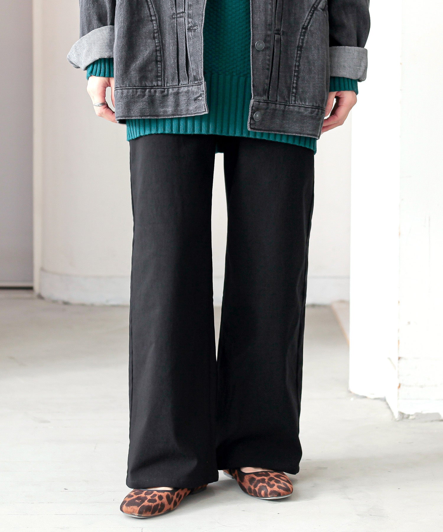 今年の春から発売して非常に人気を博しているフレキシンシリーズのゆるストレートワイドパンツに、裏起毛を施したあったかパンツを作りました。