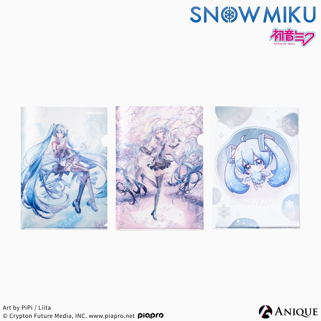 雪ミクの新規イラスト3種を使用した、メタリック仕様のクリアファイルです。
