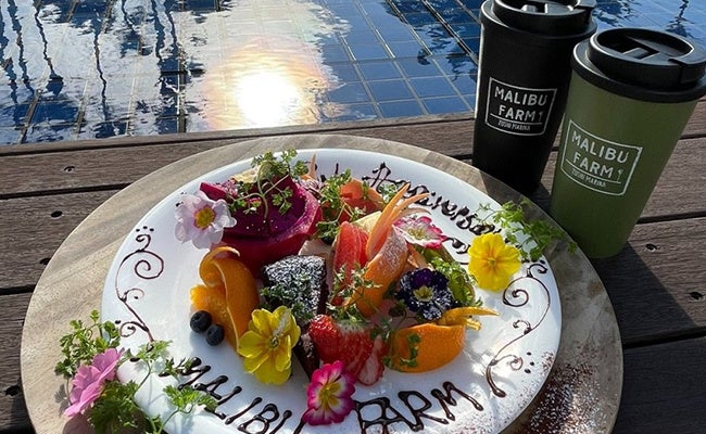 【マリブファーム 逗⼦マリーナ】3/25・26限定で3周年記念プレゼント企画!デザートプレート注⽂とInstagramフォロー&投稿で、新発売の⽵をアップサイクルしたオリジナルのエコタンブラーを。