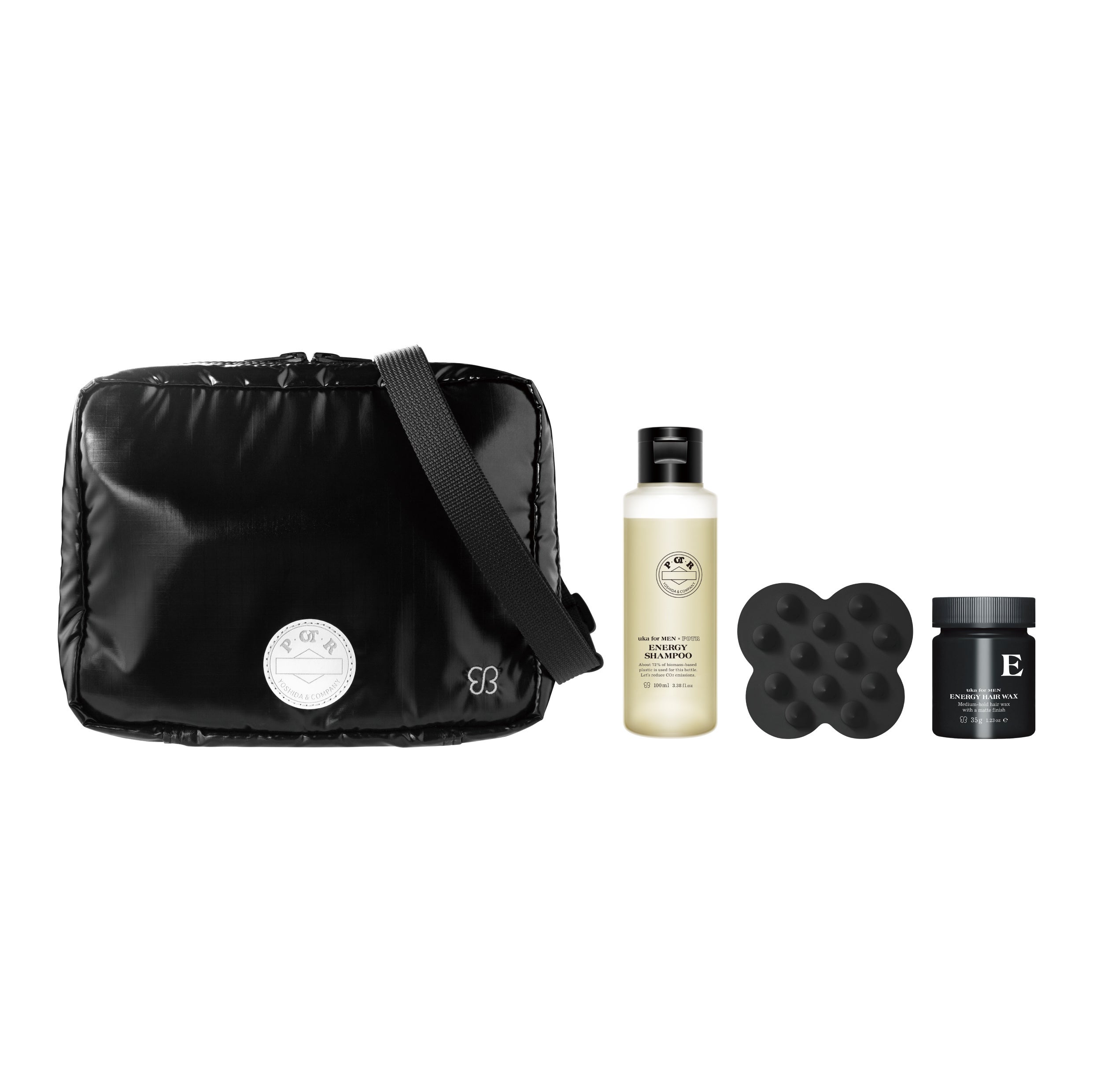 シャンプーで洗い、スカルプブラシで頭皮をほぐし、スタイリング剤で整える。清潔感から生まれる品格は大人の身だしなみ。シンプルで使いやすいuka for MEN と高い機能性の POTR 2WAYポーチのスペシャルセットです。