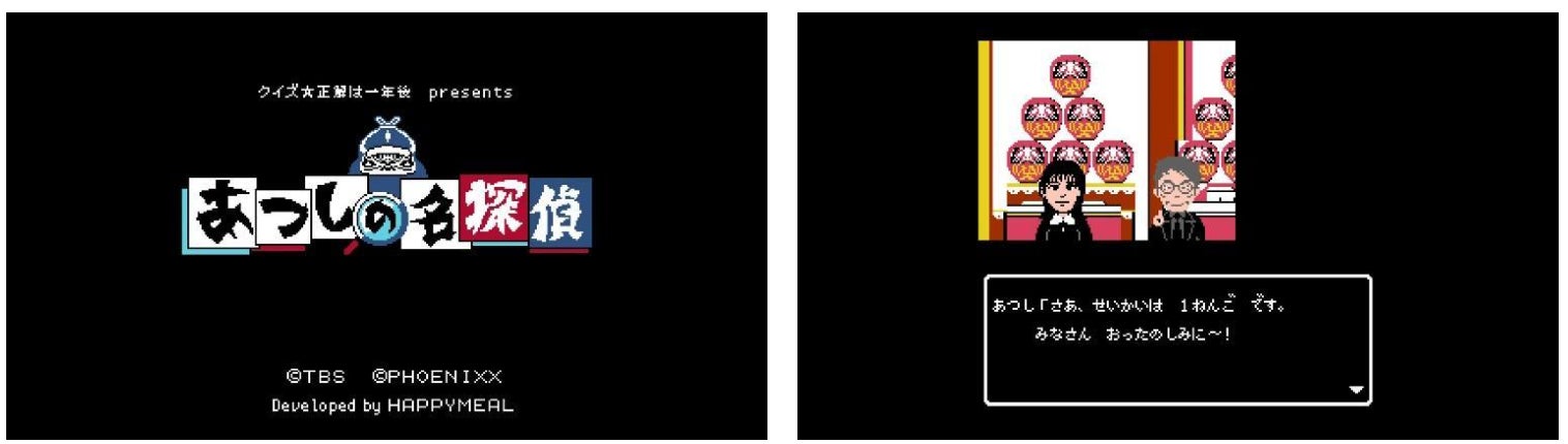 年始に行われた番組収録で起こる凄惨な殺人事件の全貌を、レトロスタイルなコマンド式アドベンチャーで描き出します。本作の開発は、「ミステリー案内」シリーズで定評のあるハッピーミール株式会社が担当。番組プロデューサー 藤井健太郎氏とともに細部にわたり、こだわりの製作を行いました。